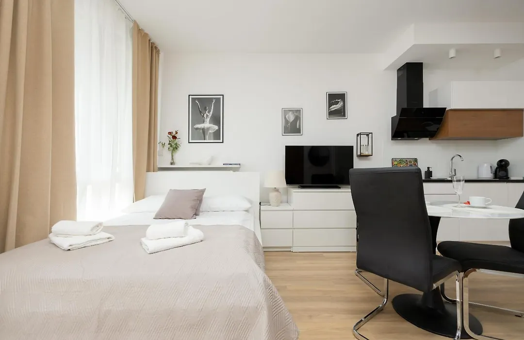 An oven and a dishwasher can be found in a fully furnished kitchen. The nearest airport is Warsaw Frederic Chopin, 5 km from this accommodation, and Branickiego 71 bus station is a mere 10 minutes' walk away. The property offers a terrace with views of the street.